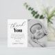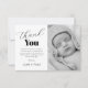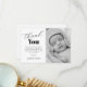 O chá de fraldas moderno agradece as cartas com um simples fundo branco, uma foto do seu bebê recém-nascido e um modelo de texto elegante que é fácil de personalizar.