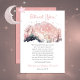"Estrelinha brilhando, você sabe o quanto você é amado!" Junte-se a uma celebração como a futura mãe dá as boas-vindas à sua pequena estrela brilhante no mundo. Você é cordialmente convidado para um chá de fraldas temático Twinkle Twinkle Little Star em homenagem à futura mãe e a seu pacote de alegria. Reúna-se debaixo do céu noturno brilhante para a chá com amor, presentes e desejos de felicidade. Basta adicionar sua mensagem, fechamento, nomes e data a este design de chá de fraldas "Obrigado".