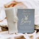 Simples cartões de agradecimentos Moderno De Chá De Bebê Coelhinho. A morna paleta de tons de marfim azul-macio, bege, define o palco para um caso de Chic Boho e Elegante. Da tipografia na moda a um tema adorável do Rabbit. Não se esqueça de descobrir toda a coleção.