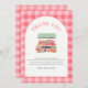 Celebrar a mãe a ser com o nosso cartões de agradecimentos local fofo. A design apresenta uma fatia de mercado de um fazendeiro de aquarela em um fundo de gingham vermelho, fazer na moda e charmoso. Use as ferramentas de design para personalizar o texto.