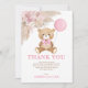 Cartão De Agradecimento Chá de fraldas de Balão de Urso Rosa Dusty