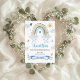Mande uma obrigado quente com este cartão de chá de fraldas adorável e maléfico! Apresentando um arco-íris pintado manualmente, nuvens delicadas e um sol brilhante, esta carta é a forma perfeita de expressar sua gratidão