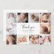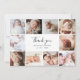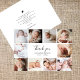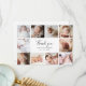 Um belo cartão de colagem quadrado de fotos elegante e moderno perfeito para agradecer aos convidados do chá de fraldas por presentes, amor e suporte recebidos. O design moderno apresenta uma colagem de 10 fotos personalizáveis quadradas. No centro há uma mensagem de "obrigado você" em um guião com letra chic e seu nome e data de nascimento, em elegante cartaz clássico. No verso está a sua mensagem de obrigado personalizável - você aparece na fonte clássica. Através do botão "personalização", você pode substituir as fotos e alterar o texto.