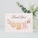 Cartão De Agradecimento Chá de fraldas de Garota do Urso Cinzenta Rosa-de-