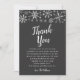 Obrigado elegante do chá de fraldas do tema do país das maravilhas do inverno você cartão do modelo que caracteriza flocos de neve do brilho da prata do falso na parte superior com uma mensagem do defeito já lá. Você pode mudar os fraseios facilmente ao seu gosto. Personalize este produto adicionando seu nome na parte inferior. Projetado para os bebés e os meninos.