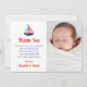 Este cartões de agradecimentos bonito apresenta um veleiro náutico a cores com faixas azuis e brancas. Personalize o texto e adicione uma foto da sua mais nova.