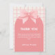 Cartão De Agradecimento Chá de fraldas de Xadrez Gingham Rosa, Arco de Arc