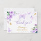 Cartões de agradecimentos de chá de fraldas floral de borboletas de ouro roxo.