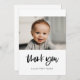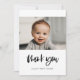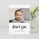 Cartões de agradecimentos moderno e simples de chá de fraldas. Totalmente personalizável com a fotografia, o nome e outros detalhes do seu bebê. Cores editáveis e fundo.