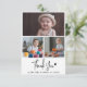 Expresse sua gratidão em estilo com nosso Chá de fraldas Moderno e Russo Obrigado Cartão com fotos, um eterno de carinho. Esta placa elegantemente projetada apresenta três fotos personalizáveis de bebês, elegantemente enquadradas dentro de uma fina borda branca sobre um fundo branco limpo. Uma grande foto horizontal fica no topo, com duas imagens menores dispostas abaixo — perfeito para mostrar os momentos mais doces de sua pequena. Abaixo das fotos, "Obrigado" está escrito em um moderno roteiro manuscrito, acrescentando um toque pessoal e sincero, seguido do nome do seu bebê e da data de nascimento em letras rústicas para um sentimento quente e charmoso. A parte de trás do cartão permite um obrigado totalmente personalizável para a sua mensagem, para que você possa expressar sua apreciação em suas próprias palavras. Este cartão combina minimalismo moderno com charme rústico, criando um caminho significativo e na moda para os entes queridos obrigados por seu apoio