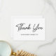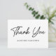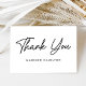 Cartões de agradecimentos simples com "Obrigado" exibido na frente em um script preto em negrito. Personalize a frente do cartão com seu nome ou texto personalizado. O preto do cartões de agradecimentos preto e branco exibe a mensagem e os nomes personalizados.
