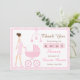 Cartão De Agradecimento Chá de fraldas rosa Damask Brunette Woman