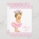 Cartões de agradecimentos de chá de fraldas com fundo de renda rosa e adorável menina vintage vestindo um tutu rosado bonito, calçados rosa, coroa rico e arco rosa no cabelo. Este cartões de agradecimentos giro, de estilo simples e rosa, para bebês é facilmente personalizado adicionando a sua mensagem no estilo de fonte, tamanho e cor de fonte e texto da sua escolha, ou deixe o vazio de adicionar a sua mensagem manuscrita após a sua chegada. Você também pode alterar a cor de fundo.