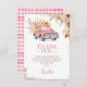 Chá de fraldas Rustic Wildflower Pink Pumpkin Pumpkin Truck Cartões de agradecimentos Folhagem de outono da Rapariga e cartões de agradecimentos de chá de fraldas de abóbora de flores silvestres apresentando um caminhão cor-de-rosa e abóboras cor-de-rosa e laranja. Este cartões de agradecimentos de chá de fraldas de abóbora é ideal para o chá de fraldas de queda de uma menina.