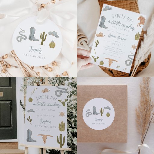 O obrigado do tema do cowboy giro e russo, seu modelo com ilustração de cactos, cobra, chapéu de cowboy, botas de cowboy, etc.