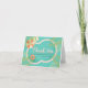Este cartões de agradecimentos apresenta uma piscina azul-turquesa com um tubo interno vermelho-salmão, e um guarda-chuva vermelho-salmão e cadeiras de praia sob as folhas da palmeira sobre um fundo azul-turquesa. O verso apresenta um fundo azul turquesa com fundo branco de faixa. Altere a cor de fundo tanto da frente como da parte traseira e personalize-a para suas necessidades. Você pode encontrar mais produtos correspondentes na minha loja.