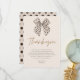 Este cartão de agradecimento de chá de noiva com arco bege terracota minimalista apresenta arco bege com fundo bege creme com um texto que diz que ela está dando o nó. Um tema perfeito de arco de chá de noiva para o seu grande dia.
