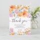 Expresse sua gratidão com este elegante cartão de agradecimento de chá de panela de noiva em aquarela floral boho pintado à mão. Com uma vibrante composição floral em tons pastéis de laranja, roxo e azul, este cartão emoldura lindamente a mensagem de agradecimento sincero. As flores delicadas e a tipografia sofisticada tornam-no perfeito para chá de panelas de noiva na primavera ou verão, adicionando um toque de elegância e charme. Ideal para agradecer aos convidados pela presença e presentes atenciosos, este cartão serve como uma linda lembrança do seu dia especial.