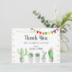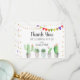Este cartão de agradecimento fofo apresenta suculentas em aquarela com bandeiras coloridas de festa e confetes de folha de ouro.