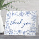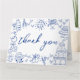 Cartão de Agradecimento Dobrável de Casamento Azul e Branco Inspirado na Europa, Desenhado à Mão e Caprichoso.