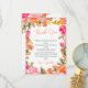 Expresse sua gratidão com estilo com este lindo cartão de agradecimento dobrado, perfeito para chás de panela de noiva. Com um vibrante design floral pintado à mão em tons brilhantes de rosa, laranja e amarelo, este cartão exala calor e alegria. O elegante "Obrigado" em letra cursiva na frente é complementado por uma mensagem sincera no interior, facilitando a demonstração de apreço pela presença e presentes dos convidados. Ideal para um chá de panela boho ou com tema floral, este cartão serve como um lindo souvenir e uma forma atenciosa de dizer obrigado.