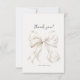 Cartão de agradecimento de chá de noiva com tema "Ela está dando o nó" com um design de laço branco elegante.