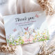 Celebre a noiva com um Chá de Noiva Flor Silvestre especial e único! Nosso Cartão de Agradecimento 'Nosso Amor está em Flor' apresenta um buquê de flores silvestres e uma caligrafia delicada. Surpreenda seus convidados com uma festa inesquecível que captura perfeitamente as ideias de chá de noiva femininas e vibrantes que você tem - tudo em um belo pacote!