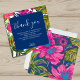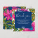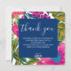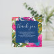 Este cartão de agradecimento de chá de noiva floral e botânico apresenta flores de aguarela em cores rosa, roxo e pêssego e folhas em tons brilhantes de verde com rosa quente ao fundo. Um convite de chá de noiva floral colorido perfeito