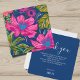 Este cartão de agradecimento de chá de noiva floral e botânico apresenta flores de aquarela em cores rosa, roxo e pêssego e folhas em tons brilhantes de verde com rosa quente ao fundo. Um convite de chá de noiva floral colorido perfeito