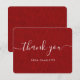Cartão de agradecimento rústico vermelho com fundo de aniagem vermelha e fonte de letra moderna. Personalize facilmente este cartão de agradecimento para um casamento, chá de noiva, aniversário ou outra ocasião.