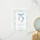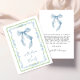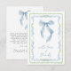 Cartão de agradecimento de chá de noiva chique e caprichoso com uma moldura de aquarela floral azul e verde vintage inspirada no grandmillenial, um laço azul elegante e "com amor + agradecimentos" exibido em uma caligrafia azul. No verso, personalize sua mensagem de agradecimento em letras modernas simples e adicione seu nome em uma caligrafia semelhante a uma assinatura, ou deixe em branco para notas manuscritas.