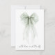 Cartão De Agradecimento Chá de Noiva em Aguarela Verde Sage com Laço Coque