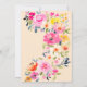 Cartão de agradecimento do chá de noiva em aquarela floral ousada boêmia com flores pintadas à mão, flores cor-de-rosa, laranja, amarelas e folhagens eucalipto e folhagem índigo com uma fonte moderna de pincel de caligrafia em bege rosado. Convite de noiva perfeito para a primavera e verão, para tema de festa no jardim e ao ar livre.