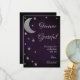 Chá de noiva escrito nas estrelas. Lua prateada e estrelas contra um fundo roxo meia-noite escuro