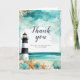 Lindo cartão de agradecimento de chá de noiva com um farol náutico preto e branco, estrela-do-mar e conchas. Perfeito para um casamento. As palavras podem ser alteradas para atender às suas próprias necessidades ou requisitos