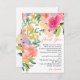 Cartão de agradecimento do chá de noiva floral boêmio brilhante e ousado no jardim, com rosas em tons de pêssego pintadas à mão, flores vermelhas em aquarela, eucalipto verde e folhagens e outras flores de jardim fofas e bonitas com uma fonte de pincel de letra moderna. Uma explosão de cores ousadas e flores bonitas!