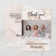 Um cartão de foto moderno de agradecimento de Chá de Noiva. Uma peônia branca, flor ao fundo. Personalize e adicione sua foto e nota de agradecimento.