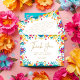Traga o espírito vibrante do México para o seu chá de panela com nosso alegre Cartão de Agradecimento de Chá de Panela com Borda de Festa Mexicana! Este design animado apresenta uma borda deslumbrante repleta de elementos coloridos inspirados em festas mexicanas tradicionais. Desde faixas de papel picado colorido até maracas festivas e flores vibrantes, cada detalhe captura a energia alegre de uma celebração de festa.