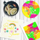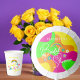 Chá de noiva retro ousado e colorido com flores, arco-íris e símbolo da paz