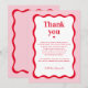Cartão De Agradecimento Chá de Noiva Ondulado Rosa e Vermelho Retrô