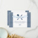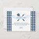 Cartão de agradecimento, em azul marinho e branco. Os elementos do design são perfeitos para um chá de noiva de BBQ, chá de casal no quintal, piquenique ao ar livre, etc. Este charmoso design rústico tem tipografia vintage e xadrez tradicional em azul marinho e branco com utensílios de churrasco. Por favor, explore minha loja para encontrar convites e decorações de festa correspondentes.