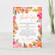Expresse sua gratidão com estilo com este lindo cartão de agradecimento dobrado, perfeito para chás de panela de noiva. Com um vibrante design floral pintado à mão em tons brilhantes de rosa, laranja e amarelo, este cartão exala calor e alegria. O elegante "Obrigado" em letra cursiva na frente é complementado por uma mensagem sincera no interior, facilitando a demonstração de apreço pela presença e presentes dos convidados. Ideal para um chá de tema boho ou floral, este cartão serve como um lindo souvenir e uma maneira atenciosa de dizer obrigado.