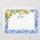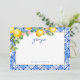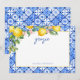 Cartão de agradecimento do chá de panela de limões aquarela azulejos azuis italianos.