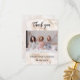 Um Chá de panela moderno Obrigado cartão com fotos. Um pedreiro branco, flor como fundo. Personalize e adicione sua foto e obrigado nota.