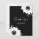 Flores e folhas de anêmona preto e branco elegantes em fundo preto, este plano de 4,25" X 5,5", obrigado, tem espaço para escrever à mão ou impressão sua mensagem personalizada no verso. CORRESPONDENTE a itens na nossa coleção.