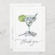 Diga "obrigado" com estilo e charme usando este Cartões de agradecimentos Margarita Elegante. Apresentando um copo de margarita com uma cunha de limão, cubos de gelo, palha e um anel de diamante, esta design combina lindamente a sofisticação com um toque de diversão. O roteiro gracioso do "obrigado que você" na frente é emparelhado com um espaço reservado personalizável para fotos no verso, permitindo que você adicione um toque pessoal aos seus convidados. Perfeito para chás de panela margaritas, casamentos, ou celebrações festivas, esta carta é uma forma deliciosa de mostrar sua gratidão.