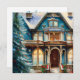Mostre gratidão aos amigos e à família que estiveram na sua festa de Natal de férias ou casamento no inverno com este modelo fácil de atualizar. Basta preencher o modelo de texto no verso para refletir sua situação. Se você preferencialmente anotações manuais, exclua o tipo para deixar o vazio. Disponível em muitos designs para cada ocasião. O charmoso design apresenta uma pintura a óleo inspirada por uma velha casa azul-turquesa vitoriana decorada para o Natal. as janelas estão acesas com uma luz quente e acolhedora.