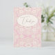 Fundo rosa pastel com sobreposição de renda falsa rústica. “Obrigado” em tipografia sofisticada. Perfeito para qualquer ocasião.