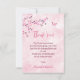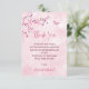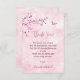 Um galho bonito de cereja rosa floresce e uma borboleta fofinha num fundo de mármore rosa para o seu chá de fraldas. Com um obrigado, você escreve um texto num elegante script manuscrito e um nome e data personalizados.