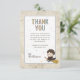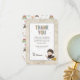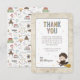 Thank your guests for coming to your shower with this enchanting Harry Potter baby shower thank you card featuring Harry himself. This charming design includes an adorable illustration of Harry Potter in his Hogwarts robes, riding his broom and ready for magical adventures. The background is sprinkled with colorful stars for a touch of whimsy. Elegant and playful fonts beautifully display your custom details, including the honoree’s name and personal thank you message. The unique paper texture of the invitation creates a storybook feel, while the back showcases a fun pattern of wizarding world icons such as spell books, potions, cauldrons, and magical creatures. Perfect for any Harry Potter fan, this thank you card brings a spellbinding touch to your baby shower.